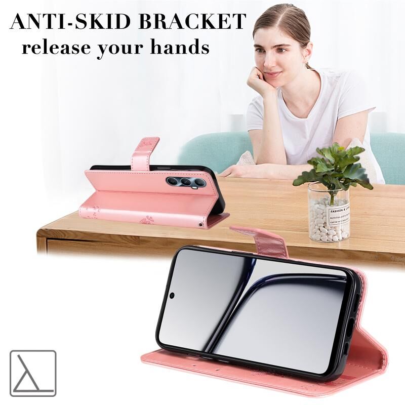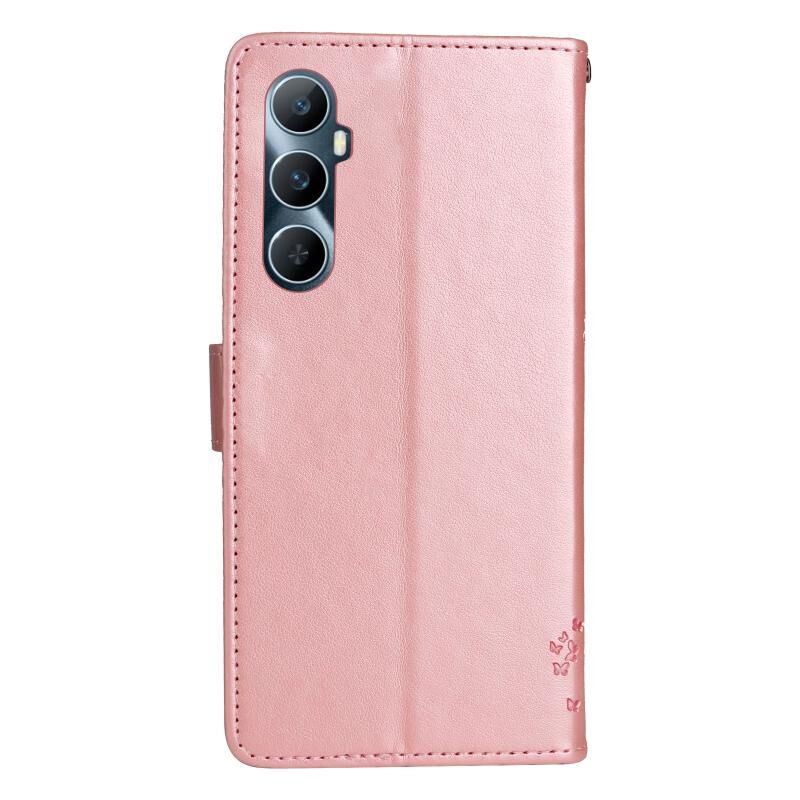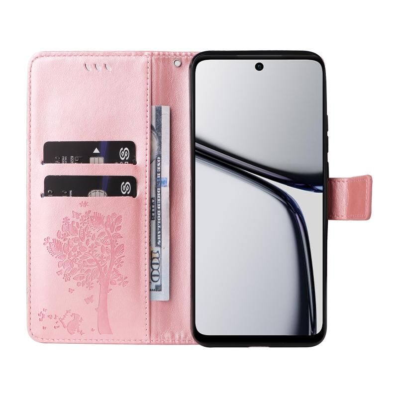 Για Realme C65 4G Tree & Cat ανάγλυφο μοτίβο Flip υπόθεση τηλεφώνου δέρμα (Rose Gold)