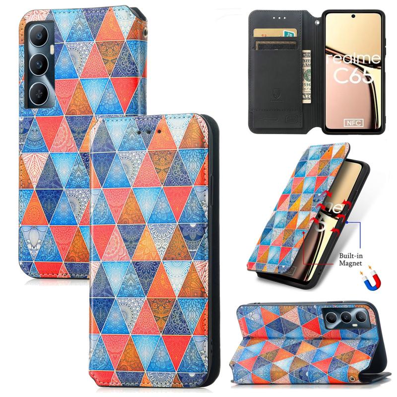Θήκη για Realme C65 CaseNeo Πολύχρωμη Μαγνητική Δερμάτινη Θήκη Τηλεφώνου (Ρόμβος Μαντάλα)