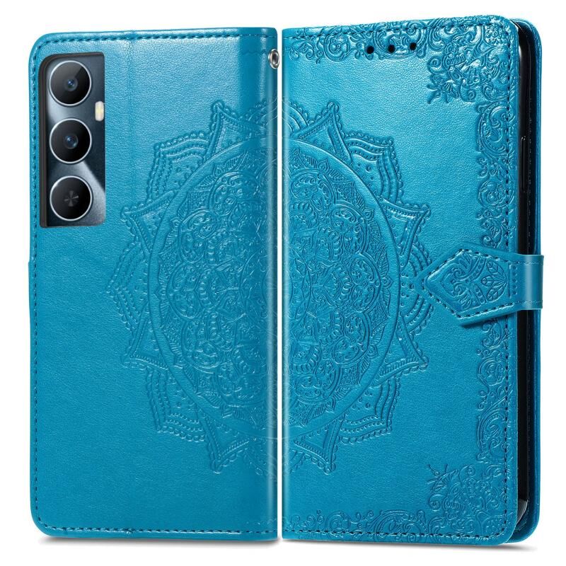 Για Realme C65 Mandala λουλούδι ανάγλυφο δερμάτινη θήκη τηλεφώνου (μπλε)
