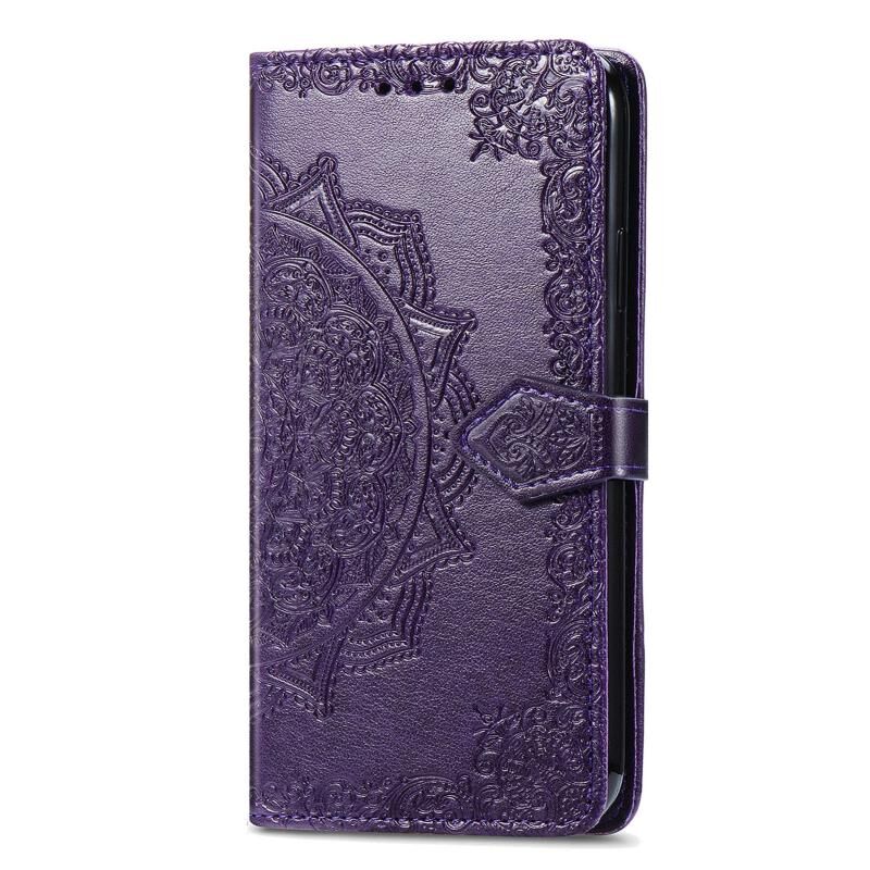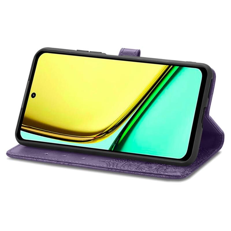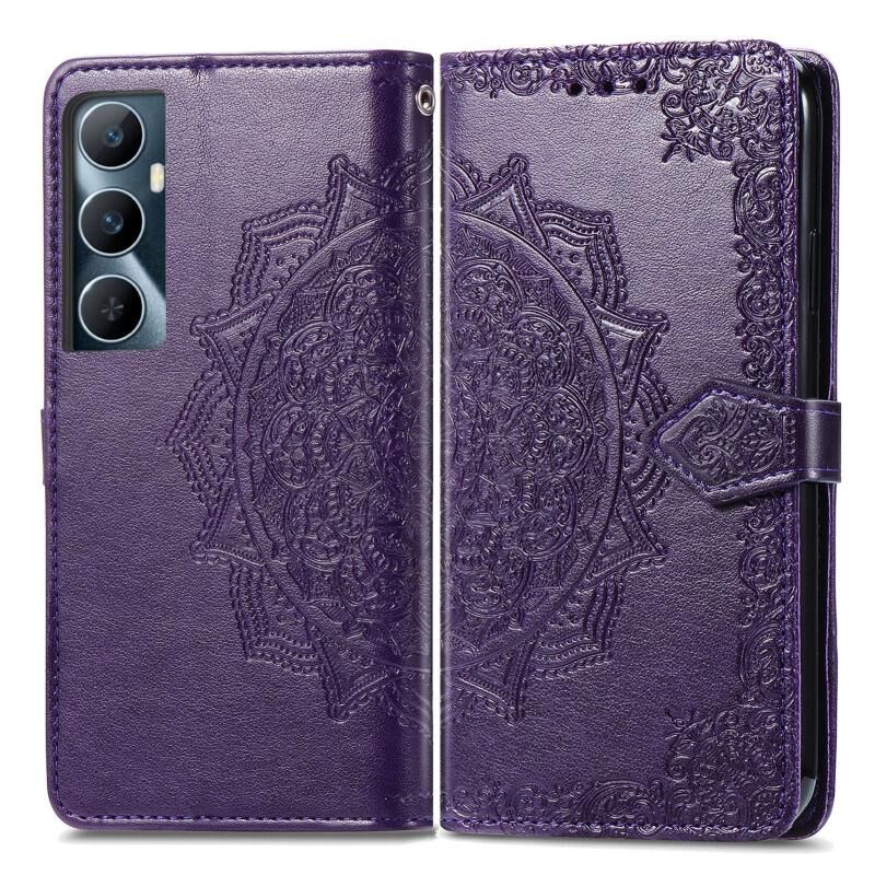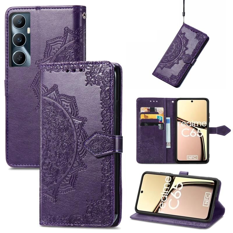 Για Realme C65 Mandala λουλούδι ανάγλυφο δερμάτινη θήκη τηλεφώνου (μωβ)