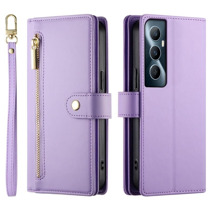 For Realme C65 Nine Card-slot Zipper Wallet Bag Leather Phone Case(Purple)