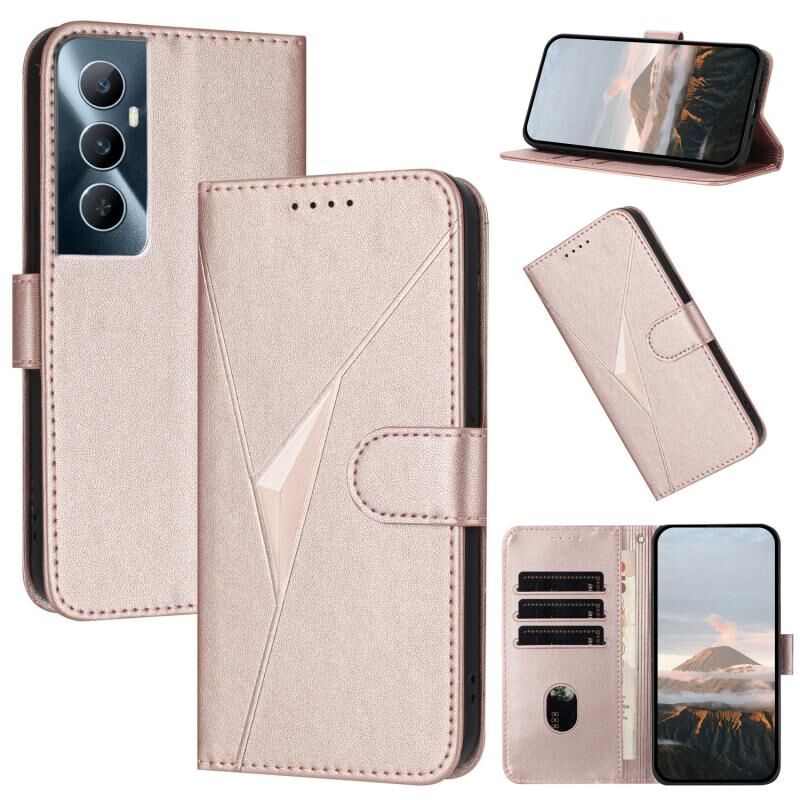 Για Realme C65 Τρίγωνο μοτίβο αγκράφα κούμπωμα δερμάτινη θήκη τηλεφώνου (Rose Gold)