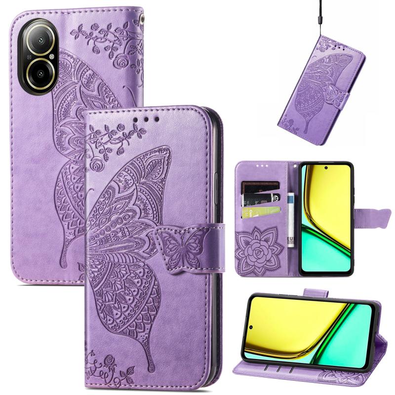 For Realme C67 4G Butterfly Love Flower Embossed Leather Phone Case(Light Purple)