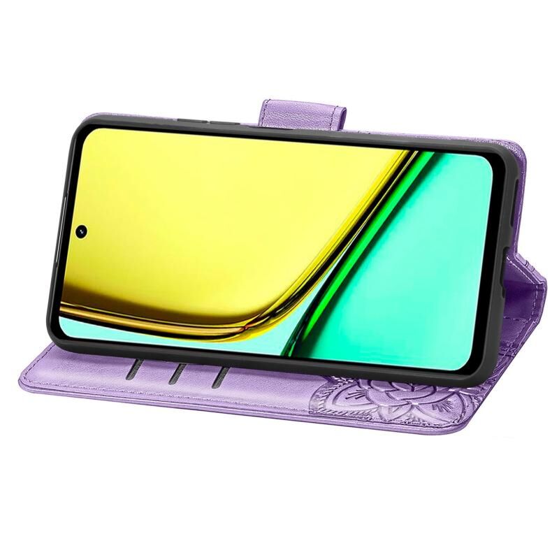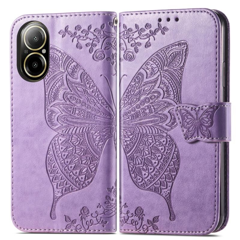Θήκη τηλεφώνου δερμάτινη ανάγλυφη με σχέδιο πεταλούδας και λουλουδιών για Realme C67 4G (Μπλε)