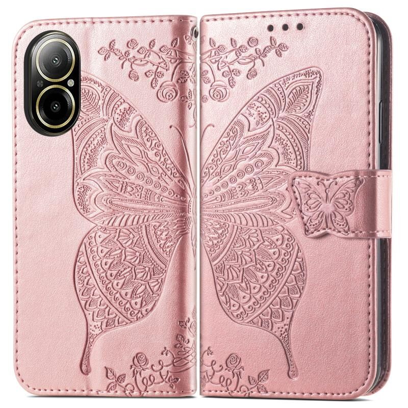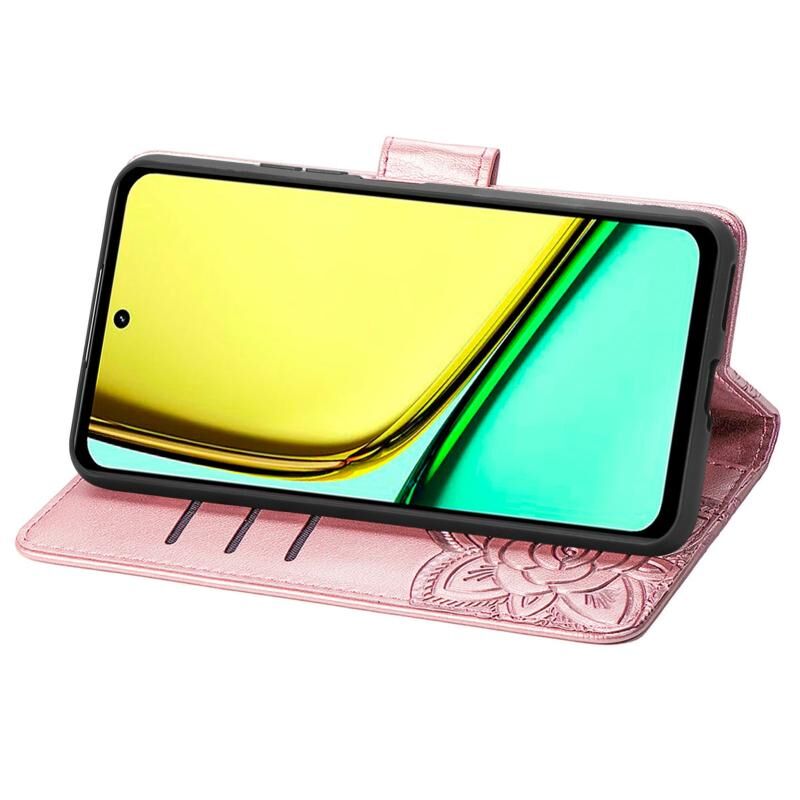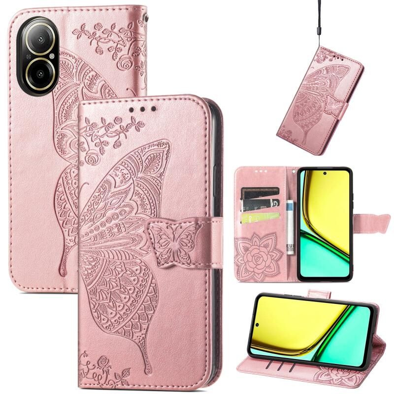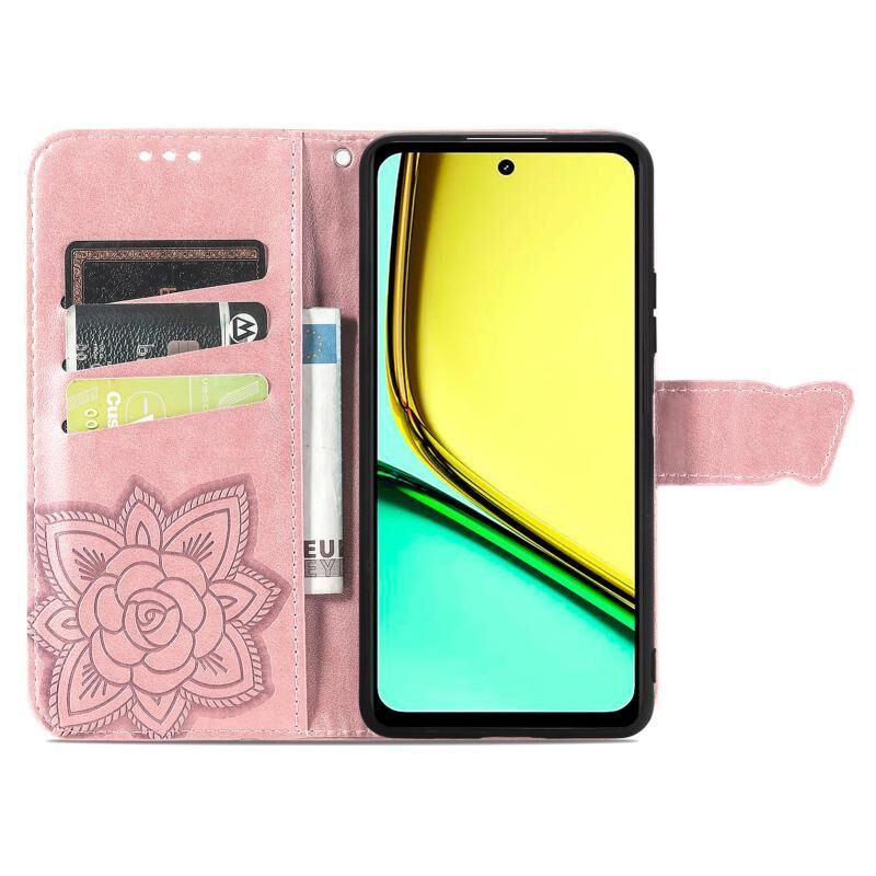 Θήκη τηλεφώνου δερμάτινη ανάγλυφη με σχέδιο πεταλούδας και λουλουδιών για Realme C67 4G (Μπλε)