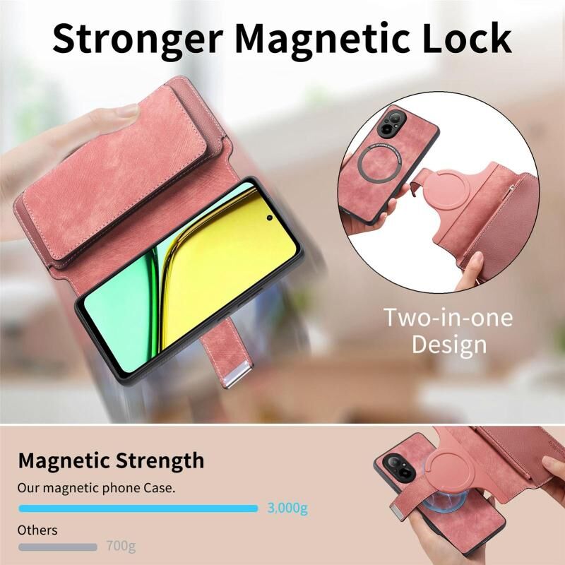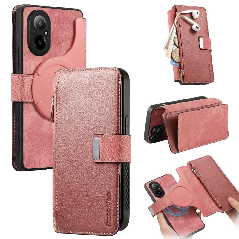 For Realme C67 4G CaseNeo MagSafe RFID Anti-theft Zipper Wallet Retro Leather Phone Case(Pink) (CaseNeo)