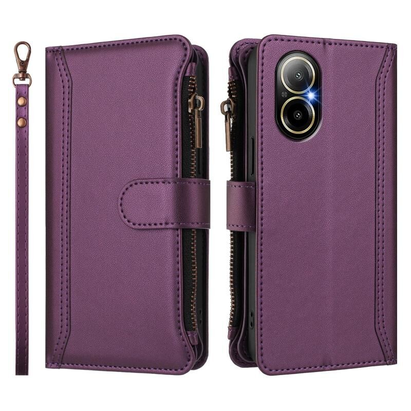 For Realme C67 4G Global / 12 Lite 4G Global Magnetic Closure 9 Card Slots Zipper Leather Case with Hand Strap(Purple)