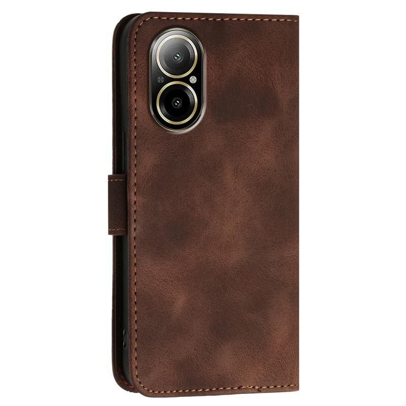 For Realme C67 4G Global Grid Butterfly Embossed Pattern Leather Phone Case with Lanyard(Coffee)