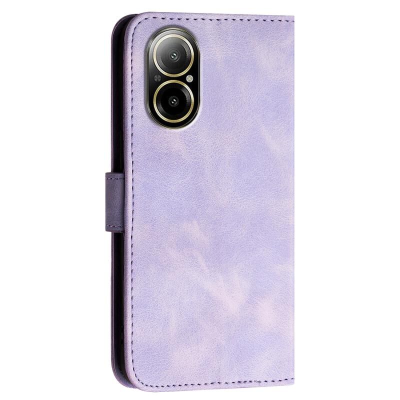 For Realme C67 4G Global Grid Butterfly Embossed Pattern Leather Phone Case with Lanyard(Light Purple)
