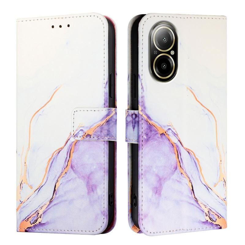 For Realme C67 4G Global PT003 Marble Pattern Flip Leather Phone Case(White Purple)