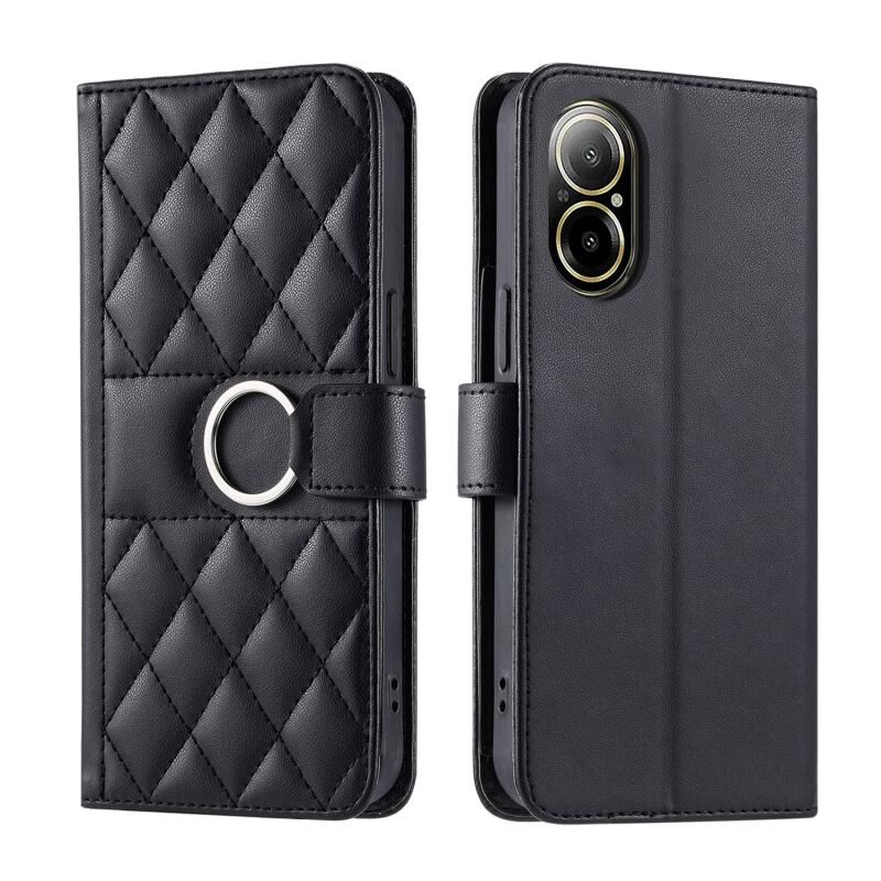 For Realme C67 4G Global Ring Buckle Rhombic Leather Phone Case(Black)