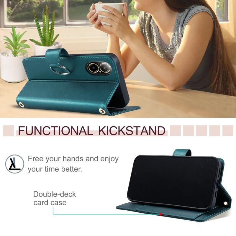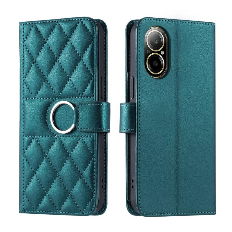 For Realme C67 4G Global Ring Buckle Rhombic Leather Phone Case(Green)