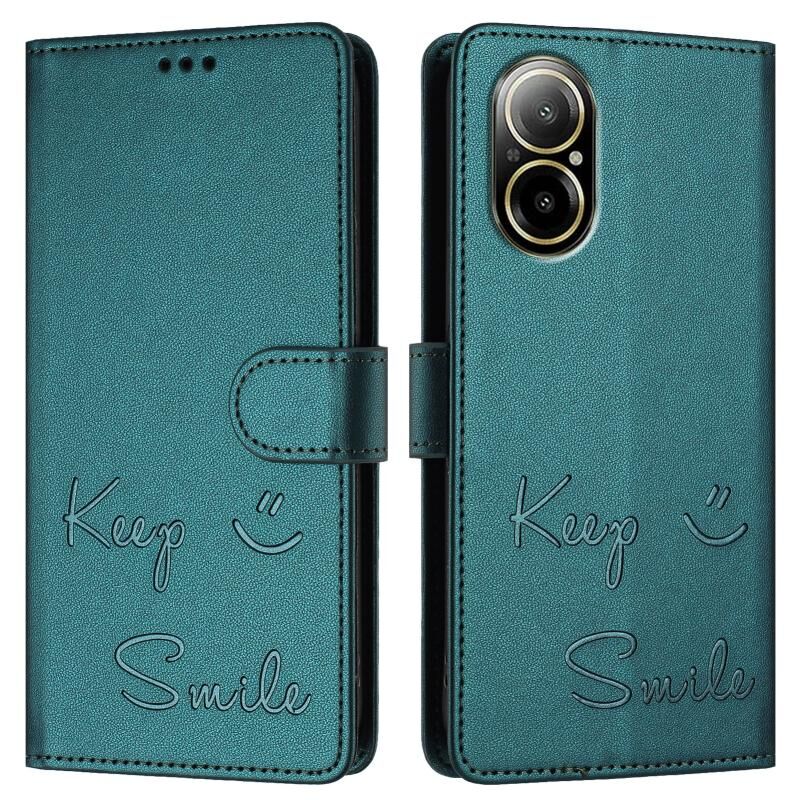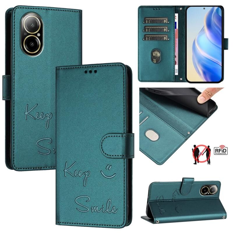 Για Realme C67 4G Global Smile ανάγλυφο RFID δερμάτινη θήκη τηλεφώνου (Peacock Green)