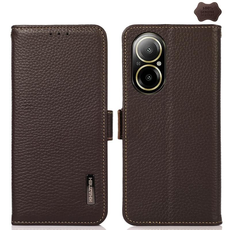 Θήκη τηλεφώνου Realme C67 4G KHAZNEH με μαγνητικό κλείσιμο, γνήσιο δέρμα Litchi, RFID (Καφέ)