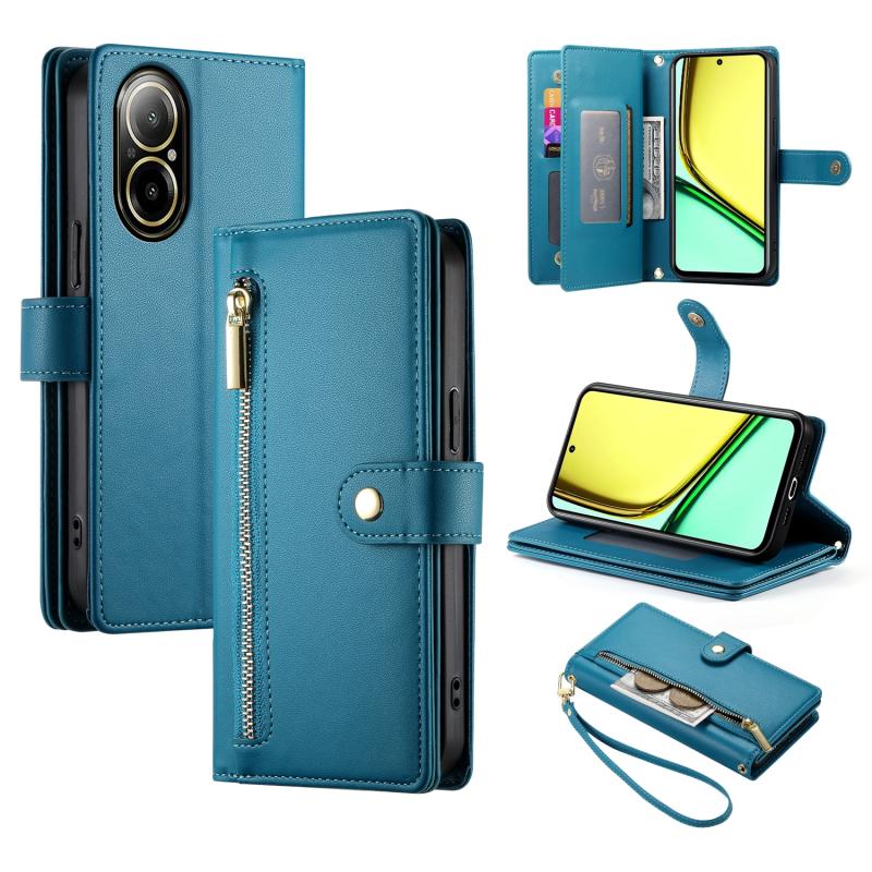 For Realme C67 4G Nine Card-slot Zipper Wallet Bag Leather Phone Case(Blue)
