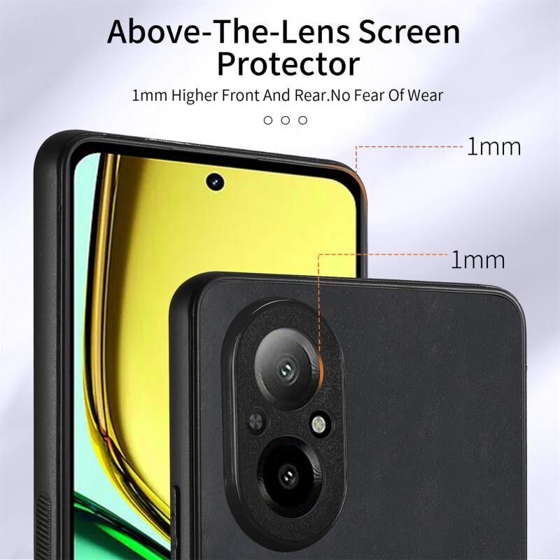 Για Realme C67 4G Ρετρό δέρμα αίσθηση δαχτυλίδι κάρτα πορτοφόλι τηλέφωνο υπόθεση (μαύρο)