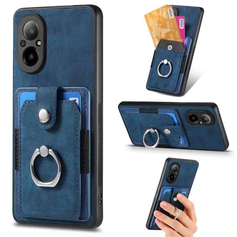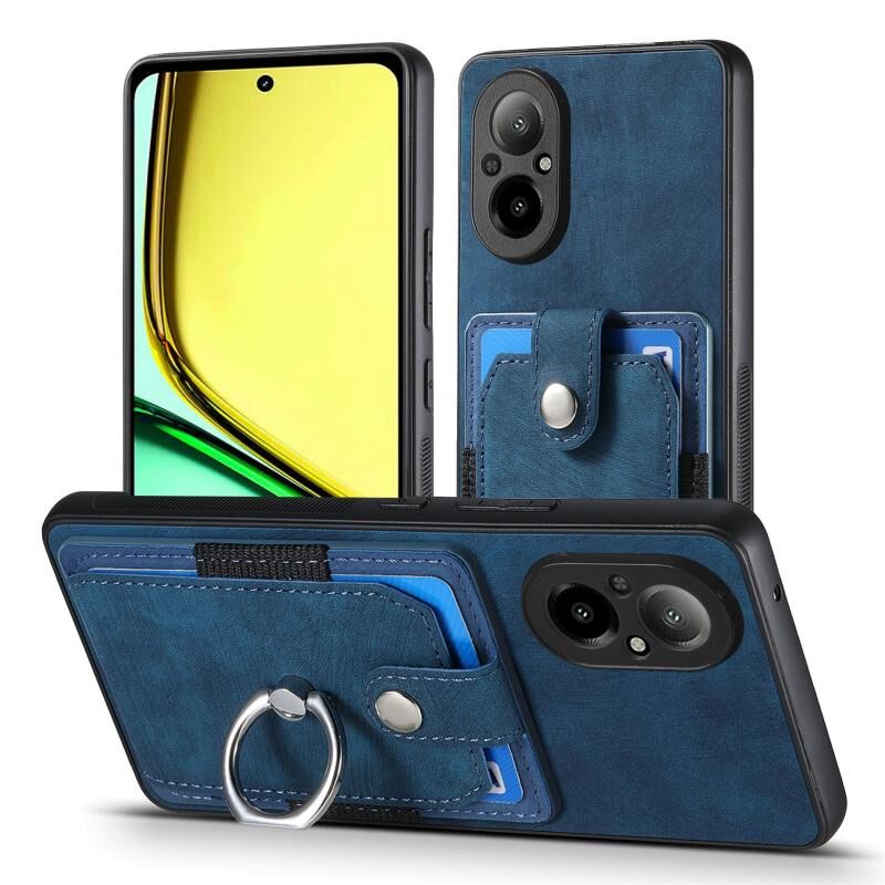 Για Realme C67 4G Ρετρό δέρμα αίσθηση δαχτυλίδι κάρτα πορτοφόλι τηλέφωνο υπόθεση (μπλε)