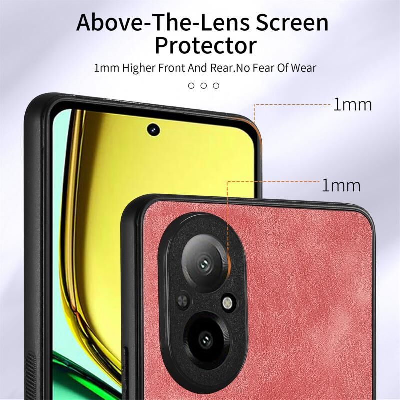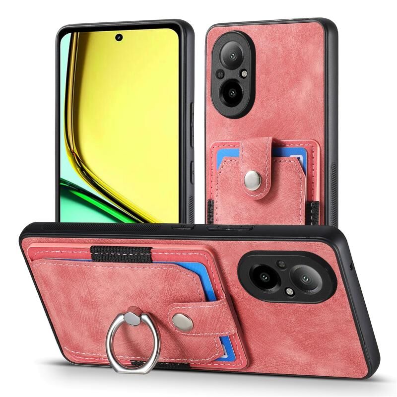 Για Realme C67 4G Ρετρό δέρμα αίσθηση δαχτυλίδι κάρτα πορτοφόλι τηλέφωνο υπόθεση (ροζ)