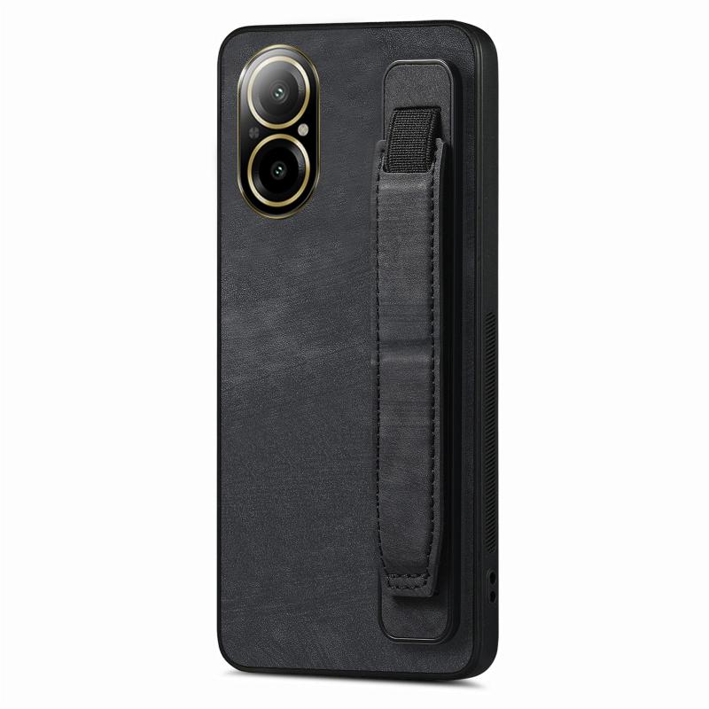 For Realme C67 4G Retro Wristband Holder Leather Back Phone Case(Black)
