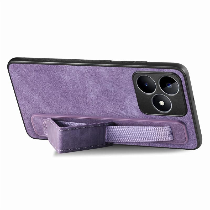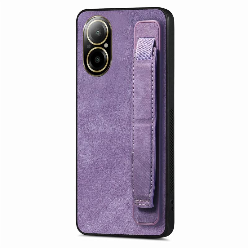 For Realme C67 4G Retro Wristband Holder Leather Back Phone Case(Purple)