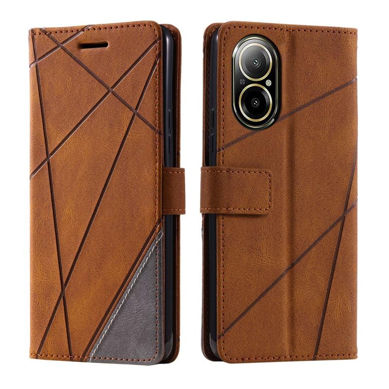 For Realme C67 4G Skin Feel Splicing Leather Phone Case(Brown)