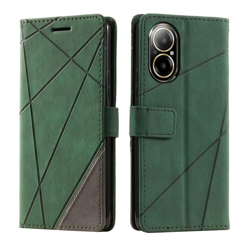 For Realme C67 4G Skin Feel Splicing Leather Phone Case(Green)