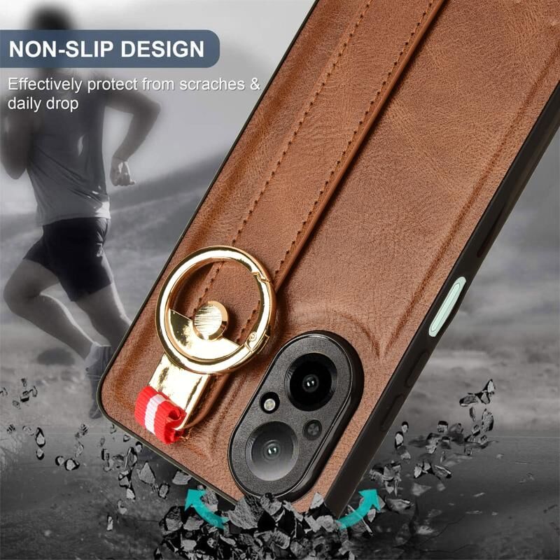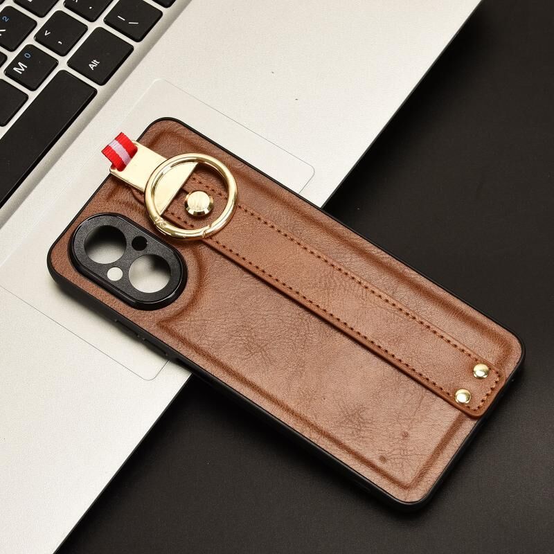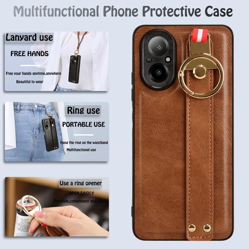 Για Realme C67 4G Wristband δέρμα πίσω υπόθεση τηλεφώνου (καφέ)