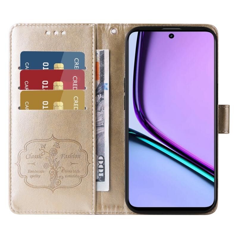 For Realme C67 5G / 11 5G Taiwan / Global Embossed Butterfly Flowers Leather Phone Case(Gold)
