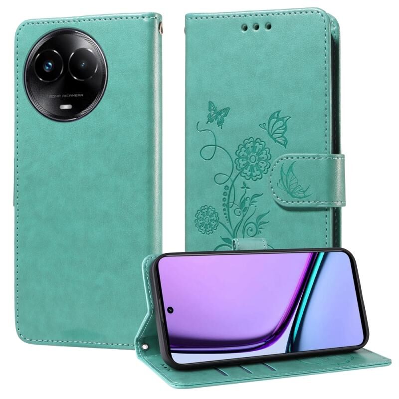 For Realme C67 5G / 11 5G Taiwan / Global Embossed Butterfly Flowers Leather Phone Case(Green)
