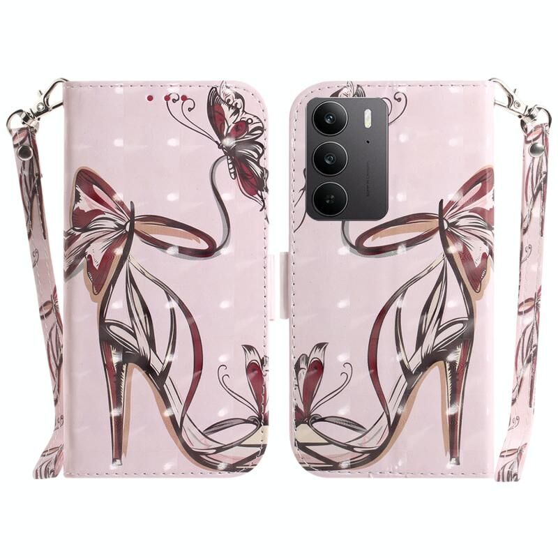 Θήκη τηλεφώνου δερμάτινη, οριζόντια, αναδιπλούμενη, 3D χρωματιστή για Realme C75 (Πεταλούδα ψηλοτάκουνο)