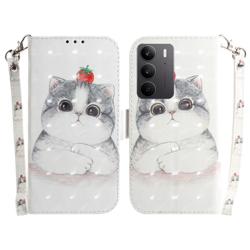 Θήκη τηλεφώνου δερμάτινη, οριζόντια, αναδιπλούμενη, πολύχρωμη 3D για Realme C75 (Χαριτωμένη Γάτα)