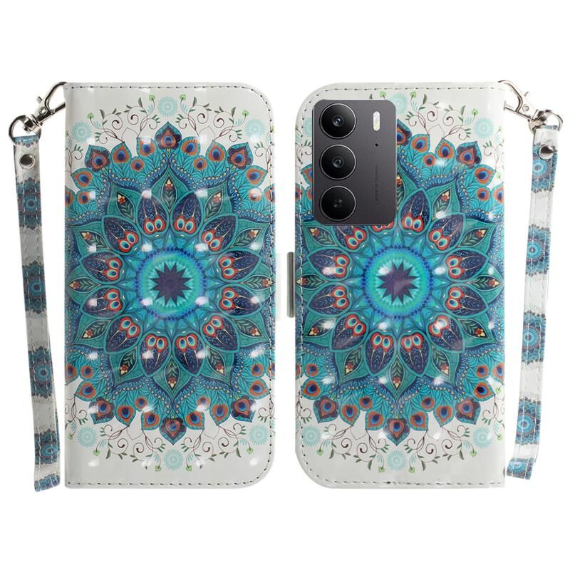 Θήκη τηλεφώνου δερμάτινη, οριζόντια, αναδιπλούμενη, με έγχρωμο 3D σχέδιο για Realme C75 (Στεφάνι Παγωνιού)