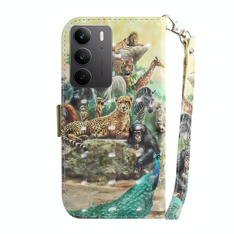 Θήκη τηλεφώνου δερμάτινη, οριζόντια, αναδιπλούμενη, πολύχρωμη 3D για Realme C75 (Ζωολογικός κήπος)