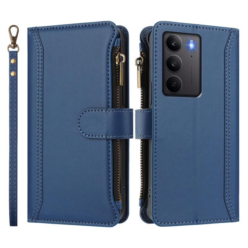 For Realme C75 4G Global / 14x 5G Global Magnetic Closure 9 Card Slots Zipper Leather Case with Hand Strap(Dark Blue)