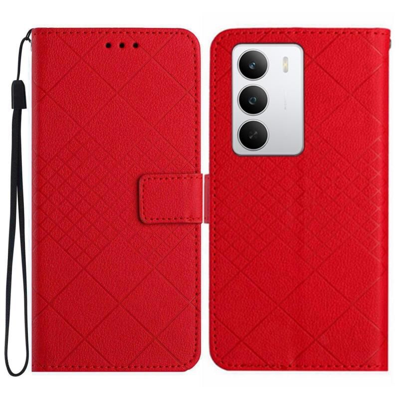For Realme C75 5G Rhombic Grid Texture Leather Phone Case(Red)