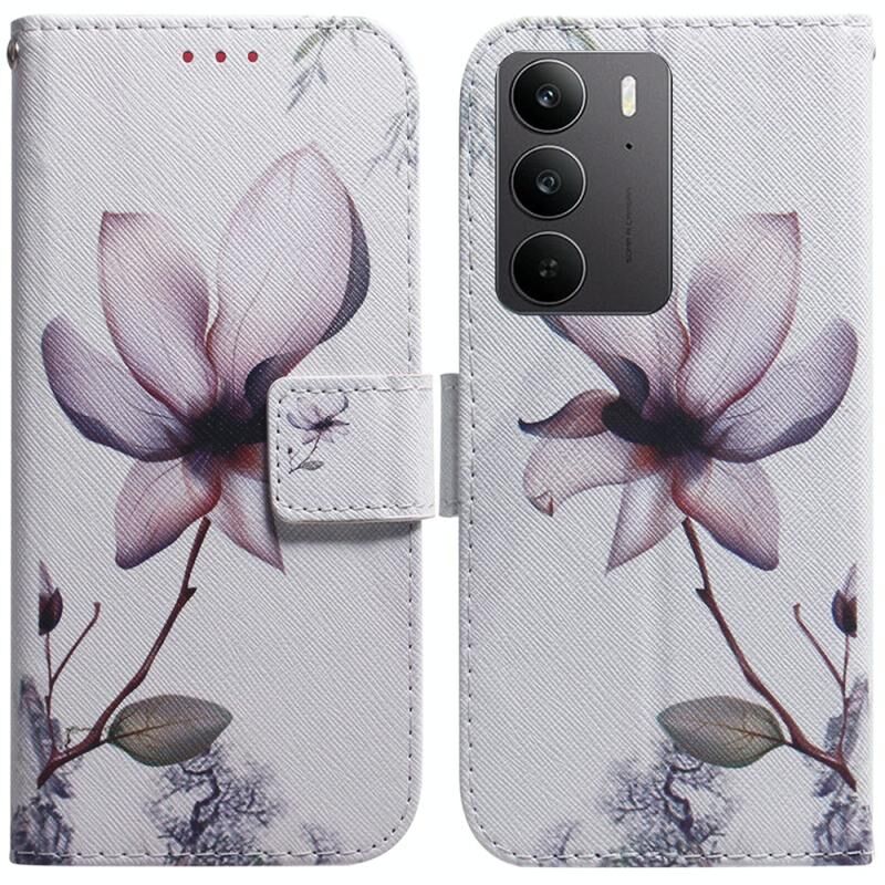Θήκη τηλεφώνου Realme C75 με σχέδιο και δέρμα που γυρίζει (Μαγνολία)