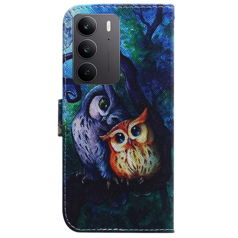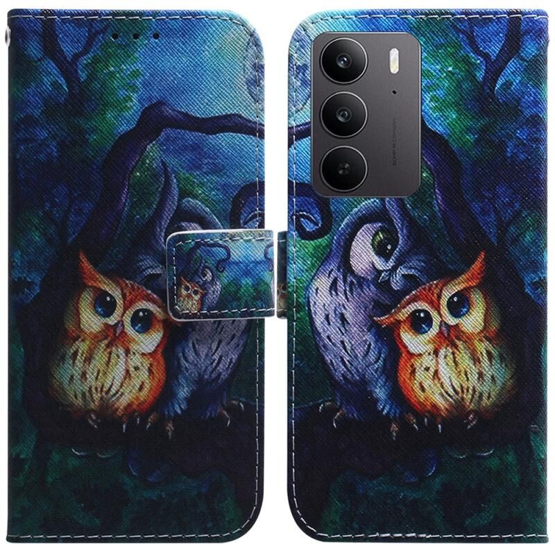 Θήκη τηλεφώνου Realme C75 με σχέδιο ζωγραφικής (κουκουβάγια σε λάδι), δερμάτινη, αναδιπλούμενη, πολύχρωμη.