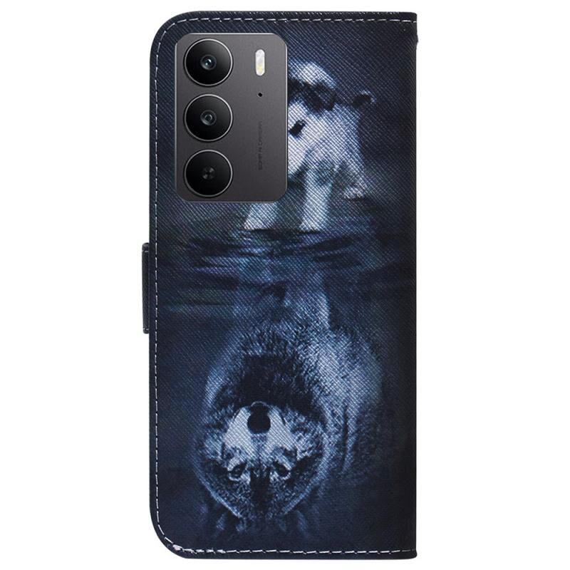 Θήκη τηλεφώνου από δέρμα με σχέδιο flip και χρώματα για Realme C75 (Λύκος και Σκύλος)