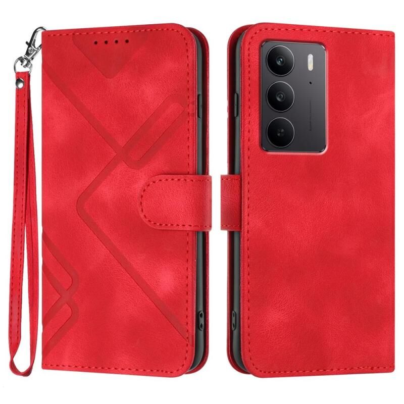 Για Realme C75 Παγκόσμια γραμμή μοτίβο δέρμα αίσθηση δέρμα τηλέφωνο υπόθεση (κόκκινο)
