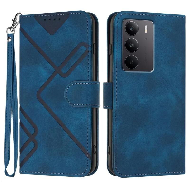 Για Realme C75 Παγκόσμια γραμμή μοτίβο δέρμα αίσθηση δέρμα τηλέφωνο υπόθεση (Royal Blue)