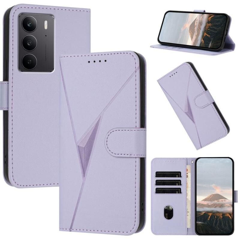 Για Realme C75 Παγκόσμια Triangle μοτίβο πόρπη κούμπωμα δερμάτινη θήκη τηλεφώνου (Light Purple)