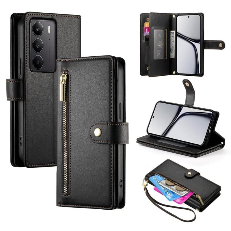 For Realme C75 / Realme 14x Nine Card-slot Zipper Wallet Bag Leather Phone Case(Black)