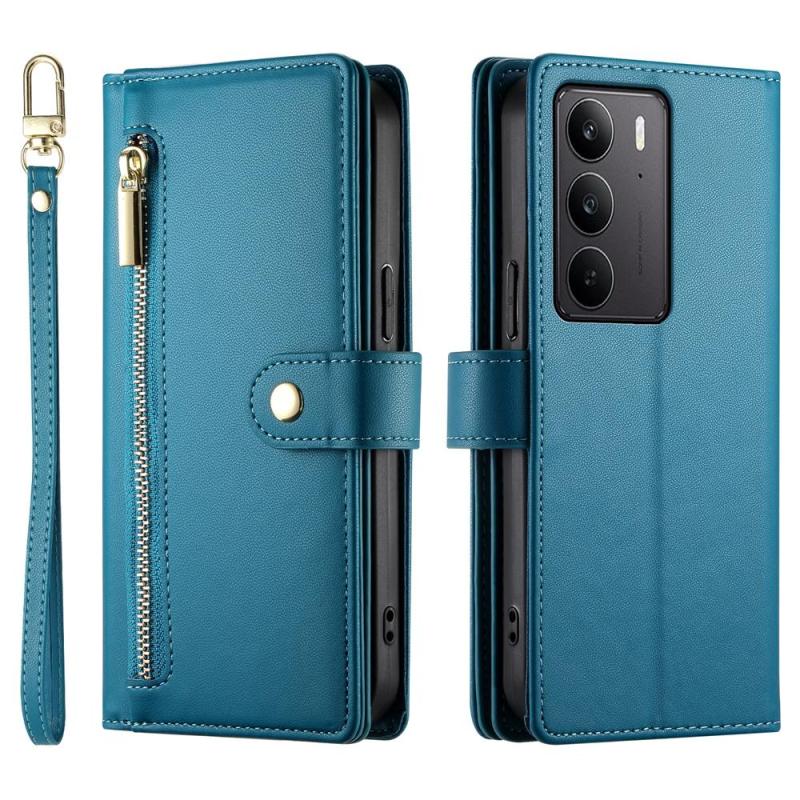 For Realme C75 / Realme 14x Nine Card-slot Zipper Wallet Bag Leather Phone Case(Blue)