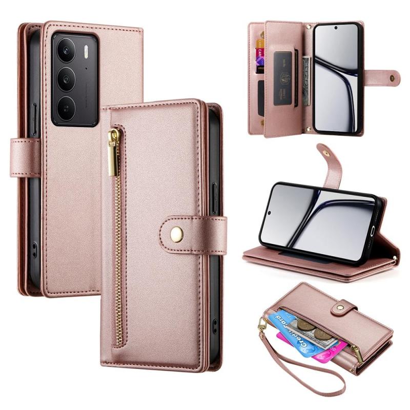 For Realme C75 / Realme 14x Nine Card-slot Zipper Wallet Bag Leather Phone Case(Pink)