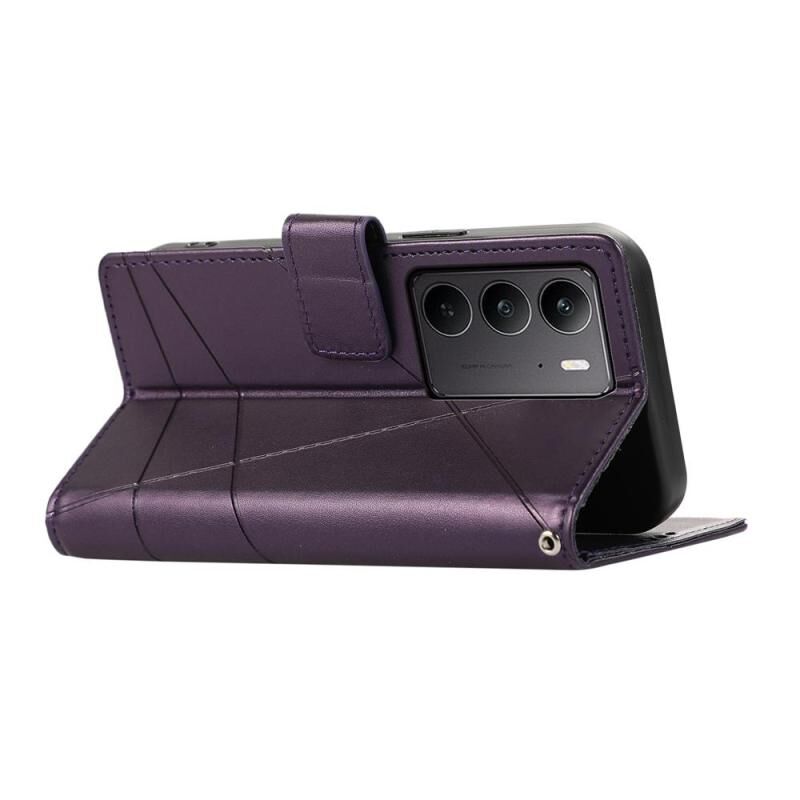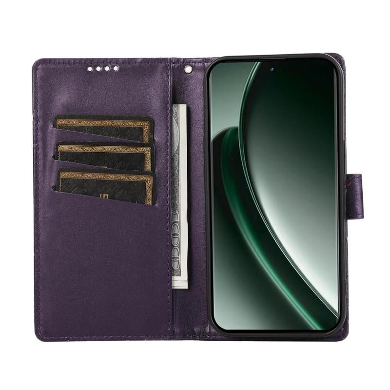 For Realme C75 / Realme 14x PU Genuine Leather Texture Embossed Line Phone Case(Purple)