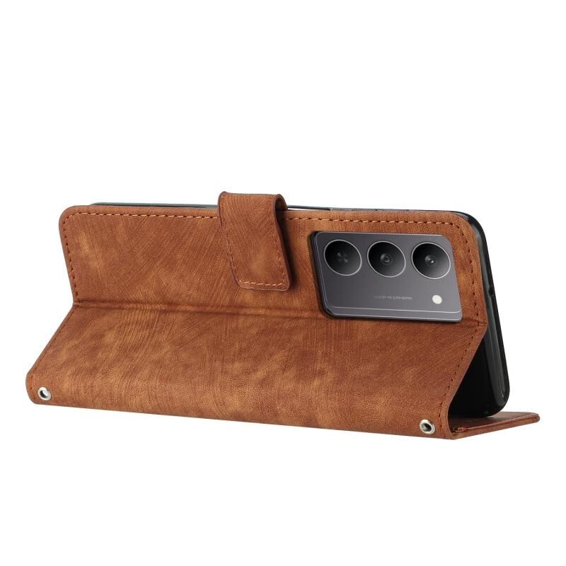 For Realme C75 / V60 Pro Skin Feel Stripe Pattern Leather Phone Case with Lanyard(Brown)