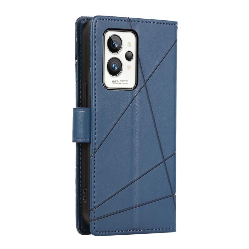 For Realme GT 2 Pro PU Genuine Leather Texture Embossed Line Phone Case(Blue)