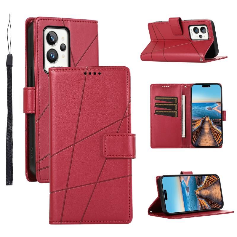 For Realme GT 2 Pro PU Genuine Leather Texture Embossed Line Phone Case(Red)