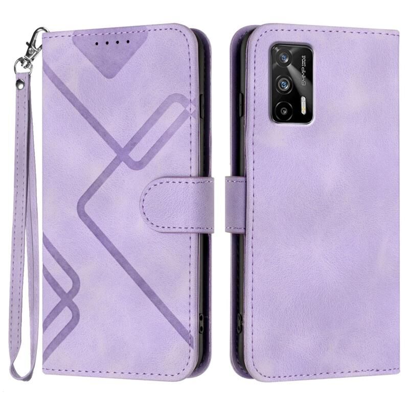 Για Realme GT 5G / GT Neo Line Pattern Skin Feel Leather Phone Case (Light Purple)
