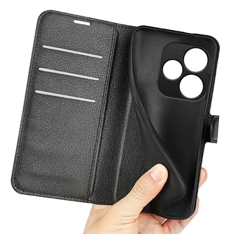 For Realme GT 6 5G Litchi Texture Horizontal Flip Leather Phone Case with Holder(Black)
